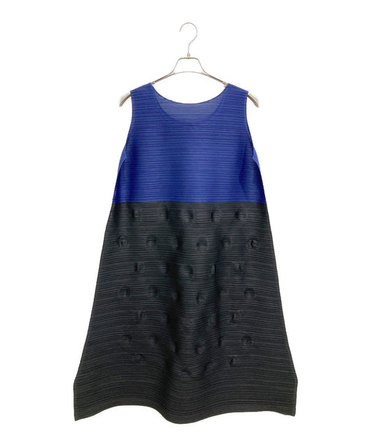 [Pre-owned] PLEATS PLEASE Circle Embossed Pleated Bicolor Sleeveless Dress PP53-JH602
