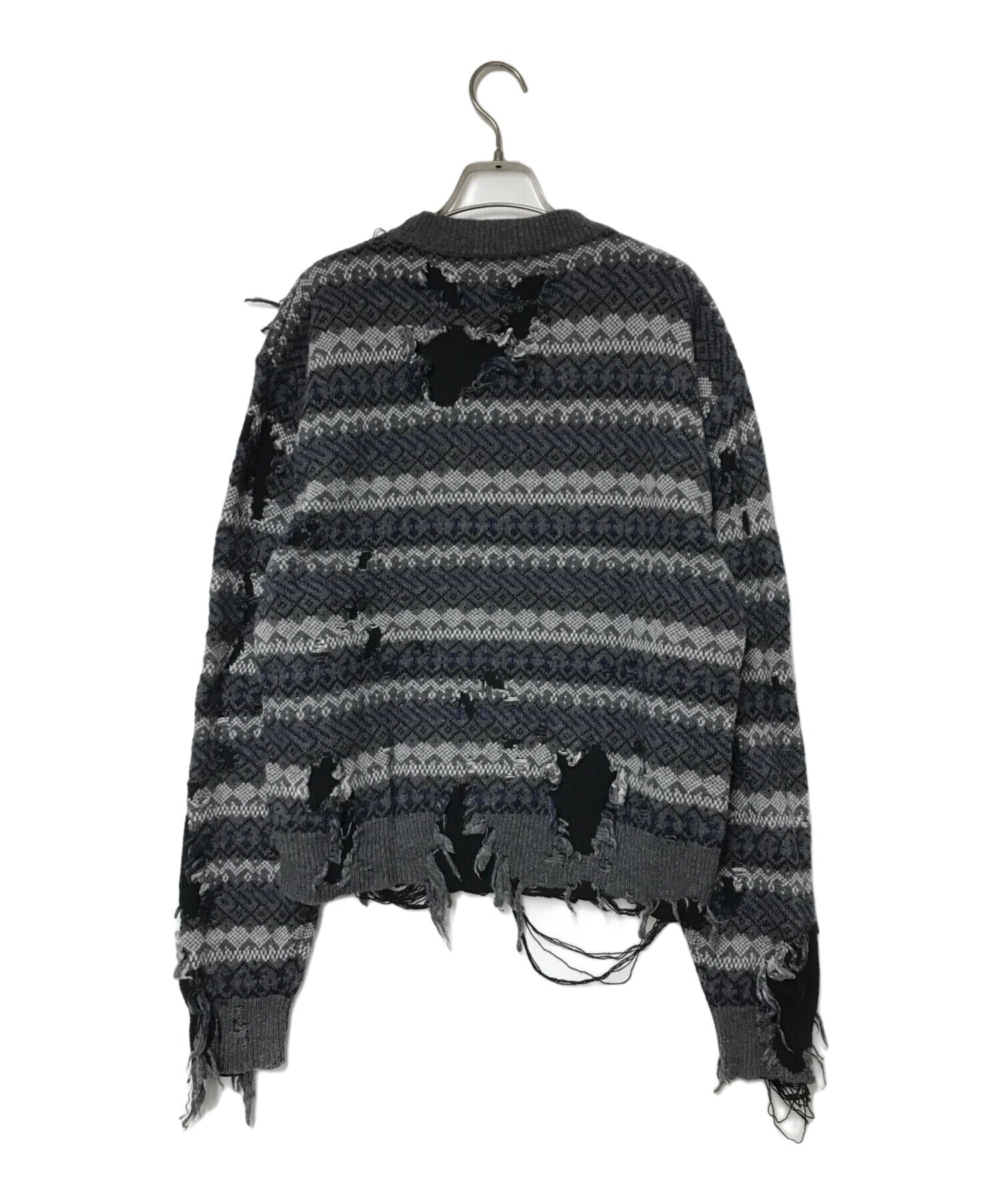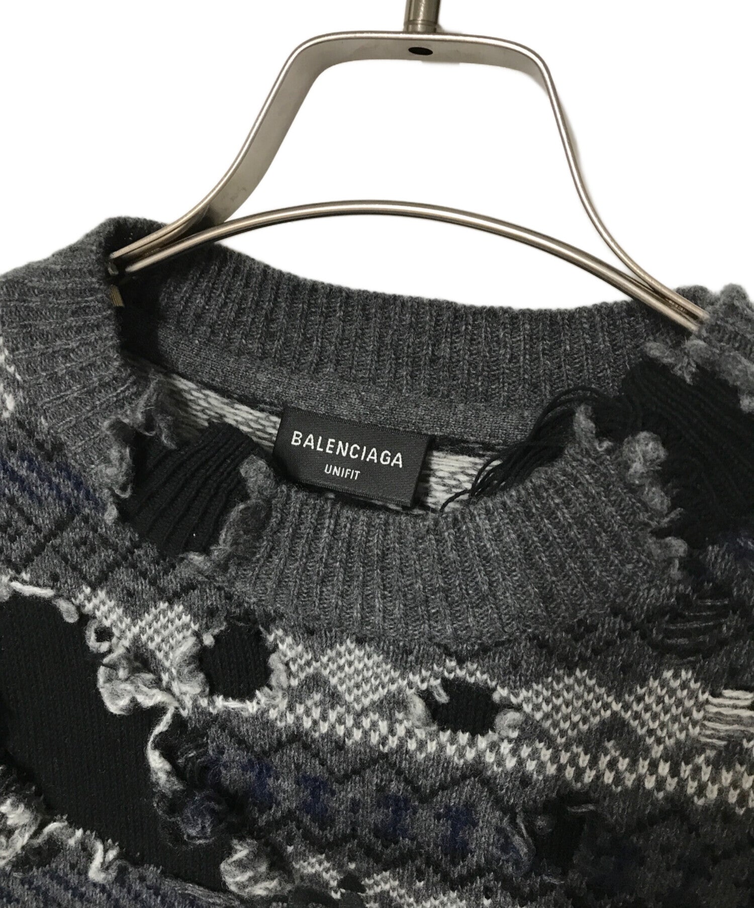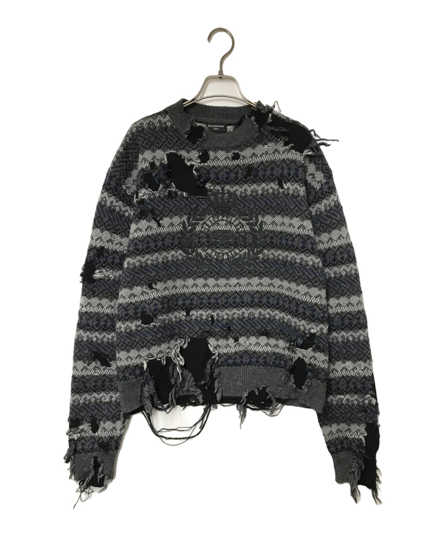 [Pre-owned] BALENCIAGA Destroy Damage Knit Grey x Black Grey x Black JP57 2021 00115 663872 T1609 Logo Embroidery UNIFIT 663872 T1609