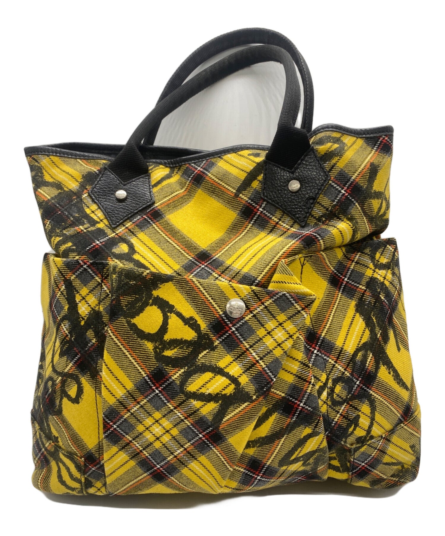 [Pre-owned] Vivienne Westwood Handwritten logo tartan plaid tote bag
