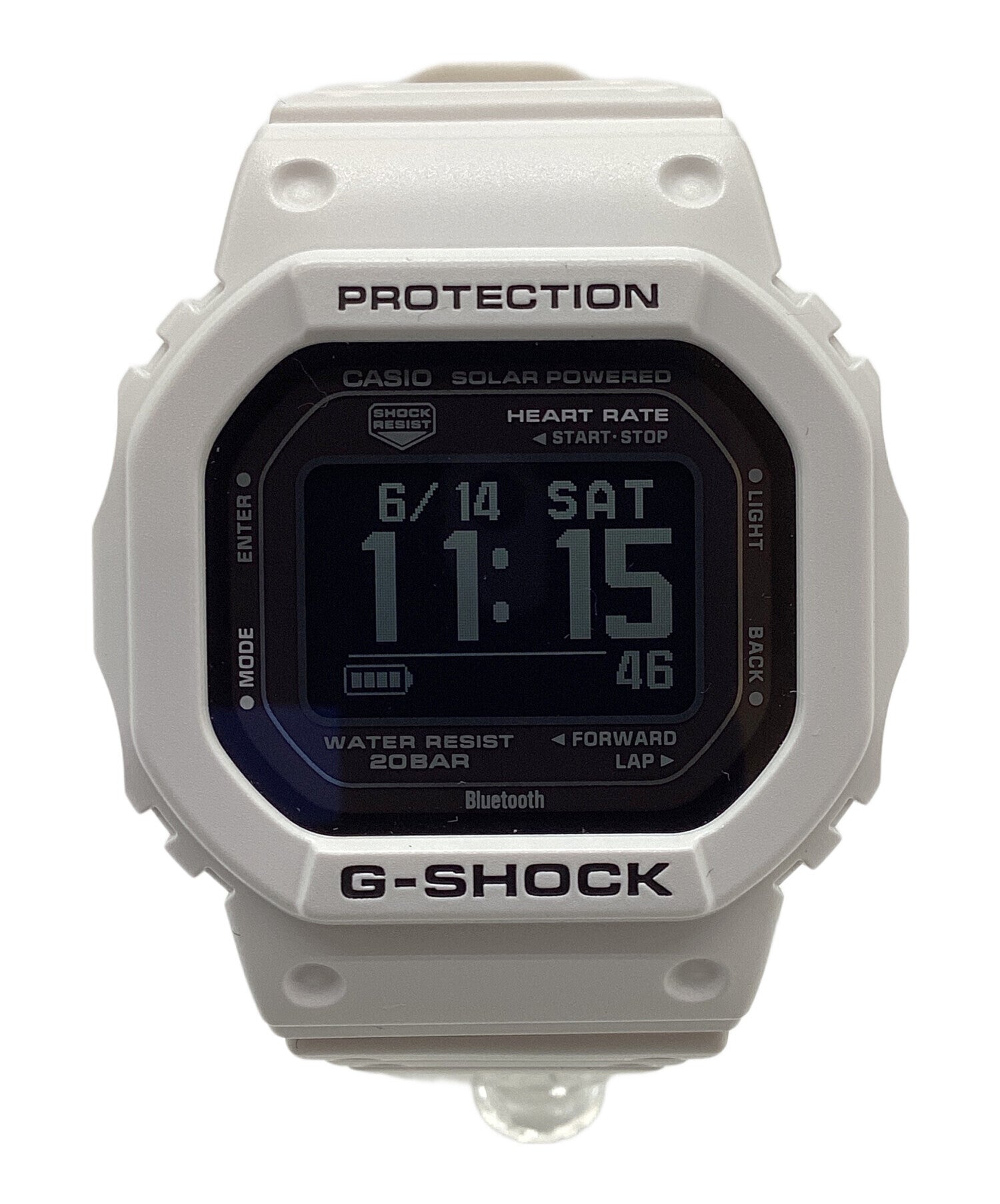 Comment CASIO G-SHOCK (DW-H5600-7JR), digital watch. With a white body and black accents, this G-SHOCK has a simple look. A heart rate monitor, pedometer, and blood oxygen level measurement function make this model ideal for training.