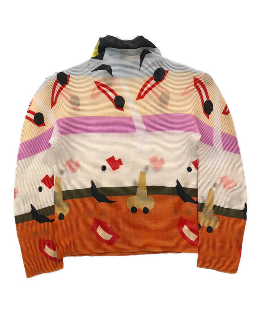 [Pre-owned] ISSEY MIYAKE me Pomegranate and Cat High Neck Blouse MI03FJ041