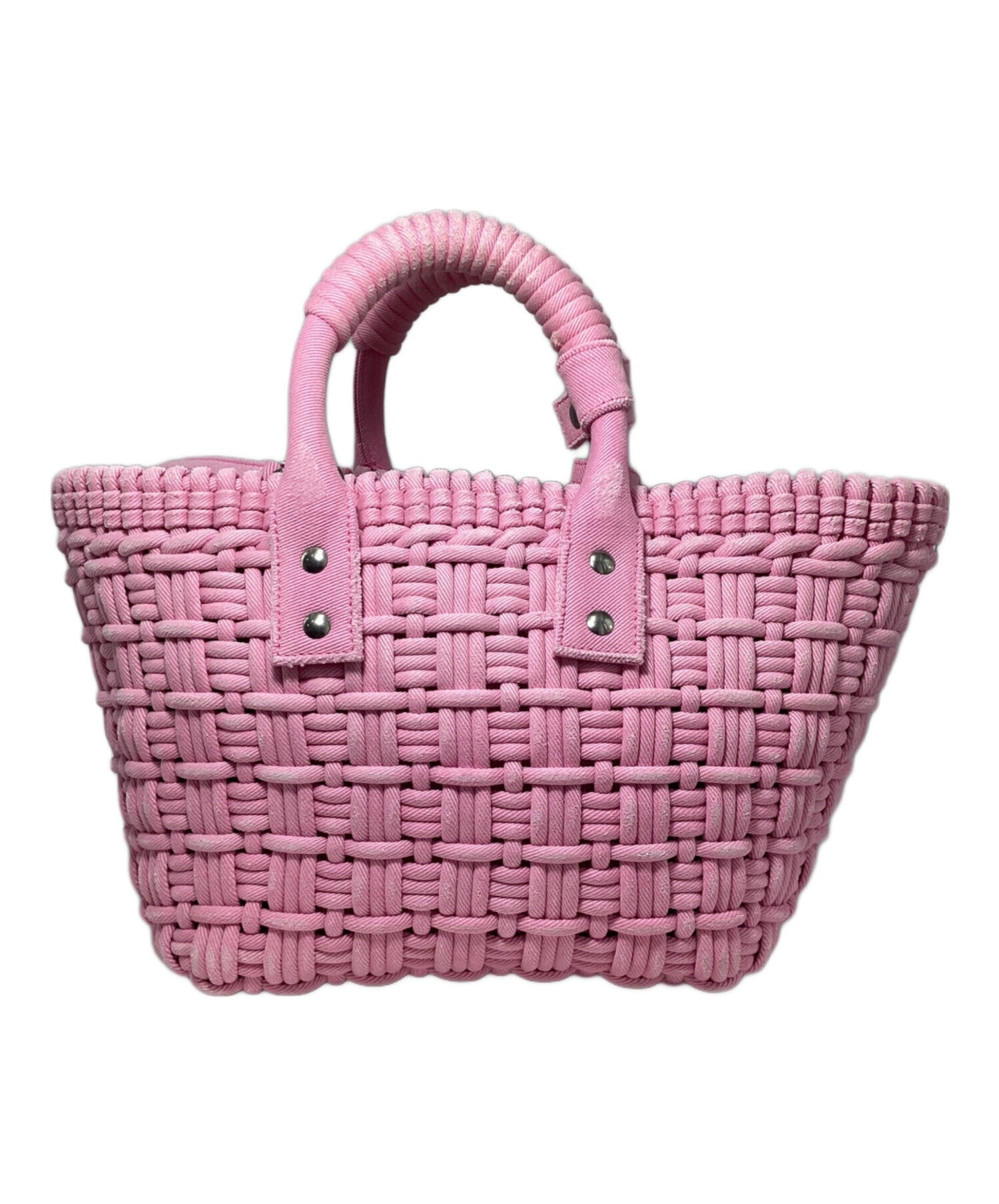 | Comment | This basket-shaped bag is inspired by rattan furniture found in French bistros. The pretty pastel pink coloring and the damage work applied throughout accentuate the bag. It is compact but has a solid presence, and can be used in two ways: on the shoulder or by the handle. |