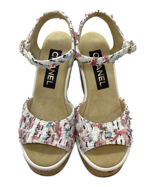 [Pre-owned] CHANEL Tweed wedge sole sandals 23c / g39812 x56846