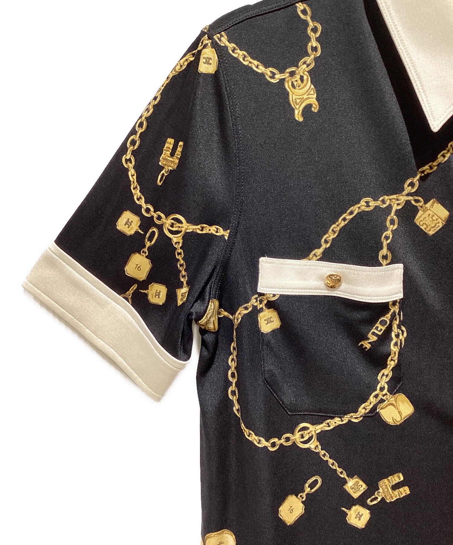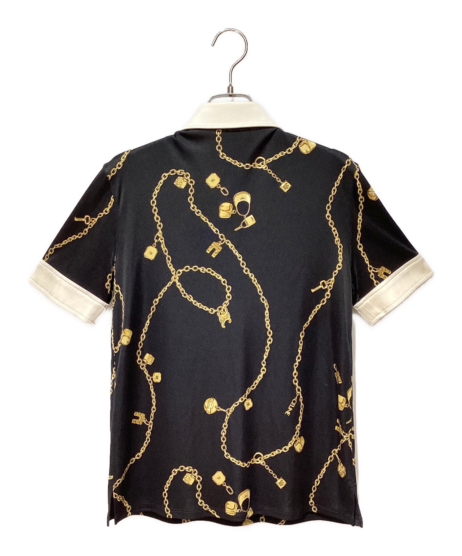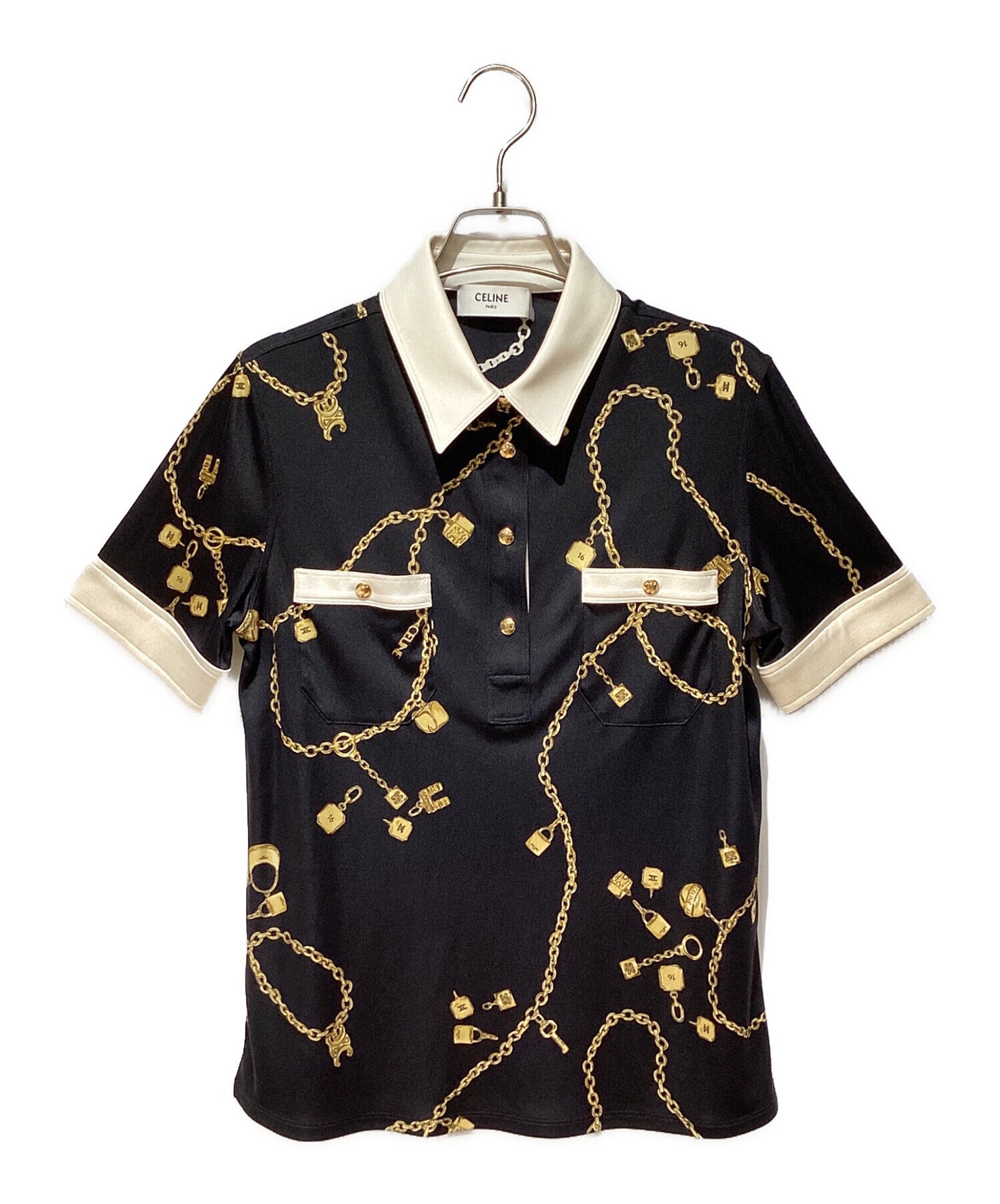 [Pre-owned] CELINE Jewelry Print Silk Polo Blouse 2B832468U
