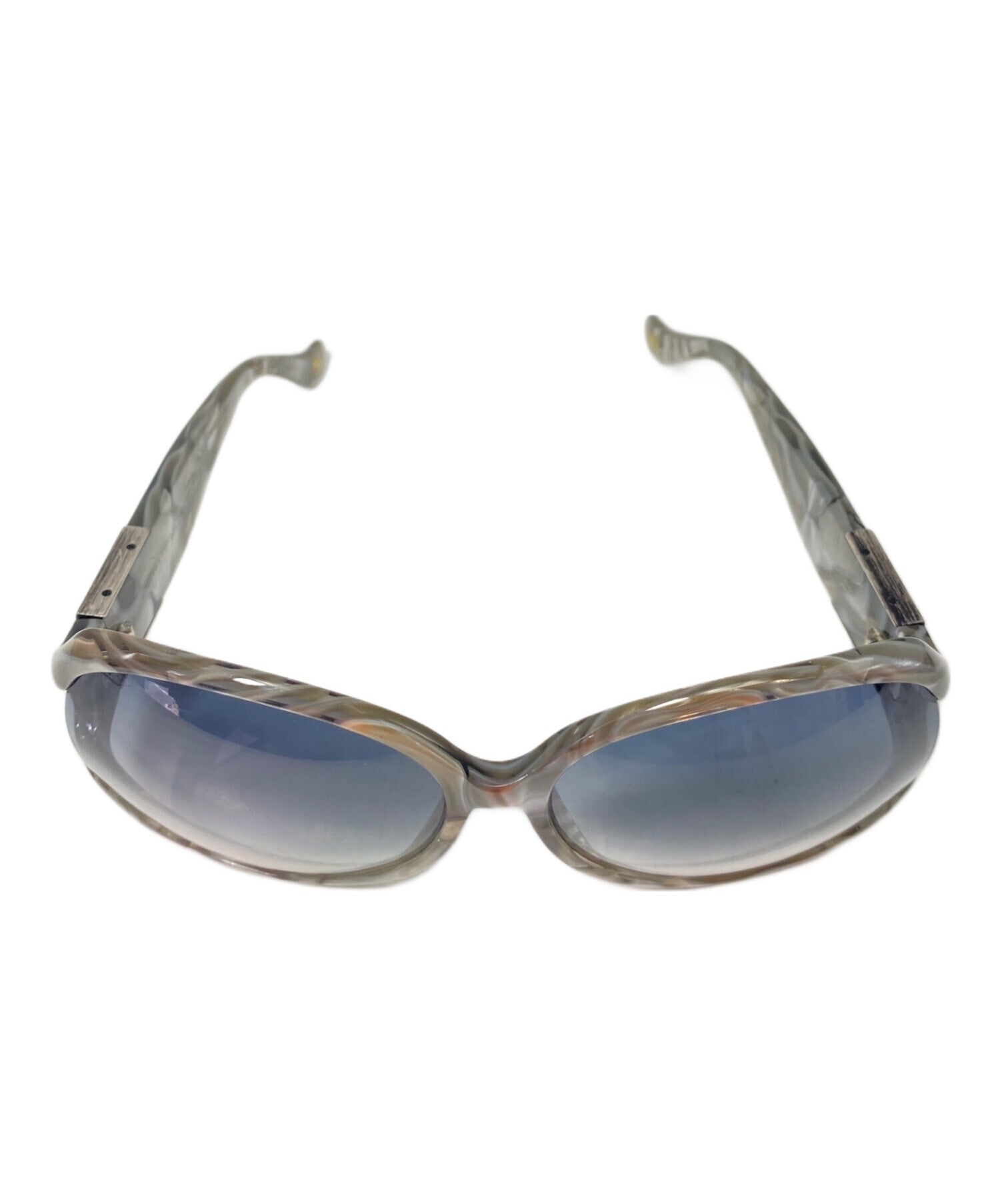 Comment These are oval-shaped self-framed sunglasses. The metallic gray shine and moderately dark lenses give this item an elegant design. The bottega-like intrecciato design on the side of the temples provides a subtle accent.