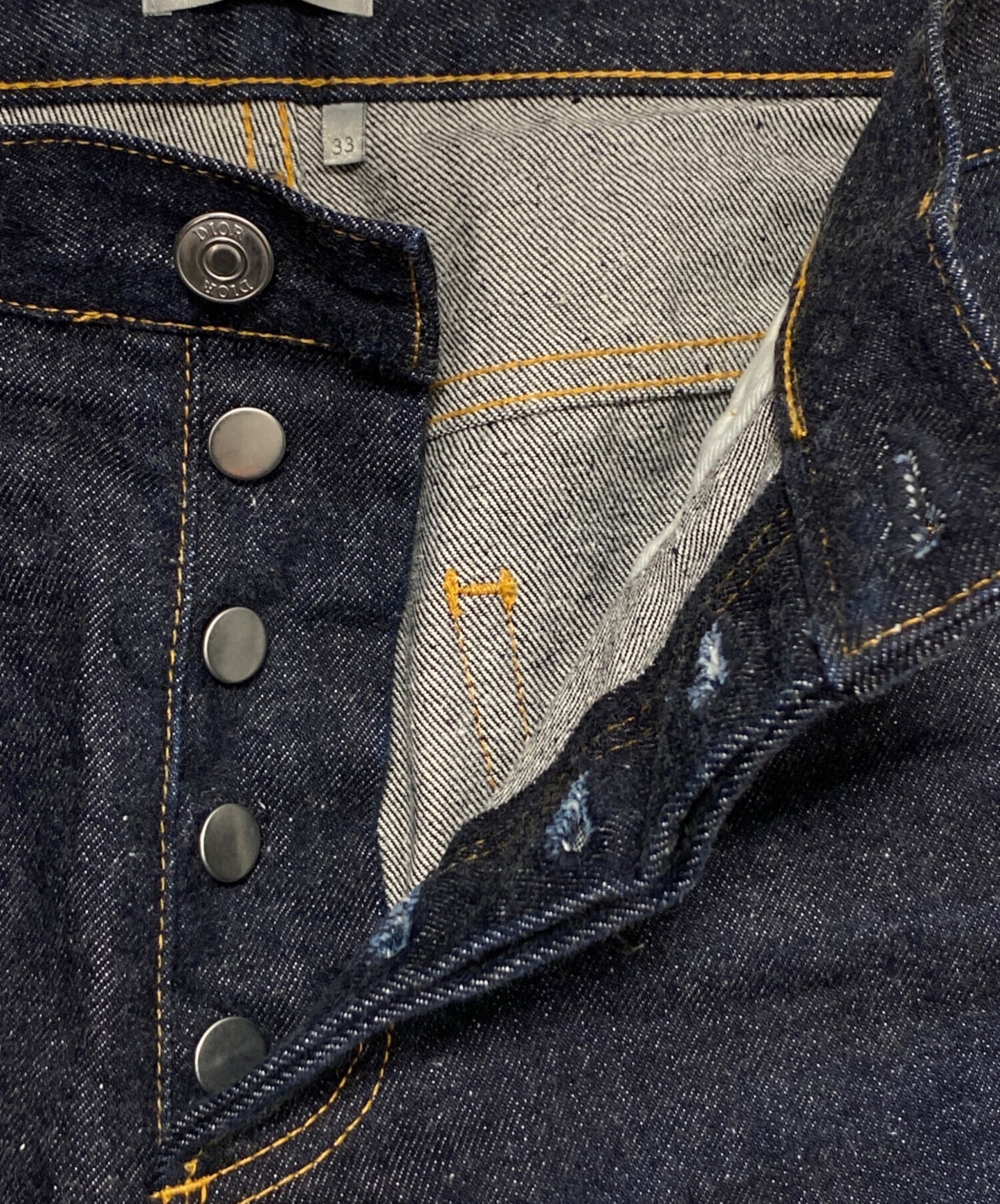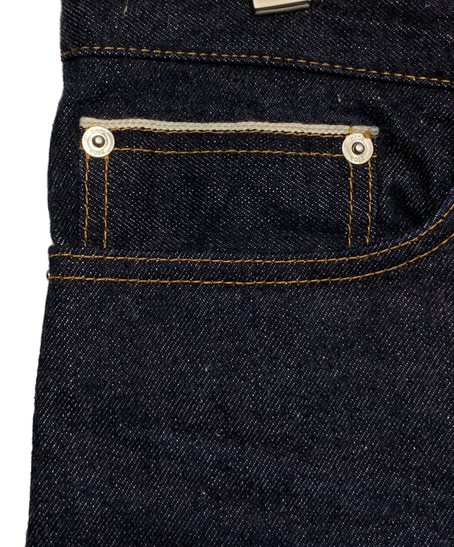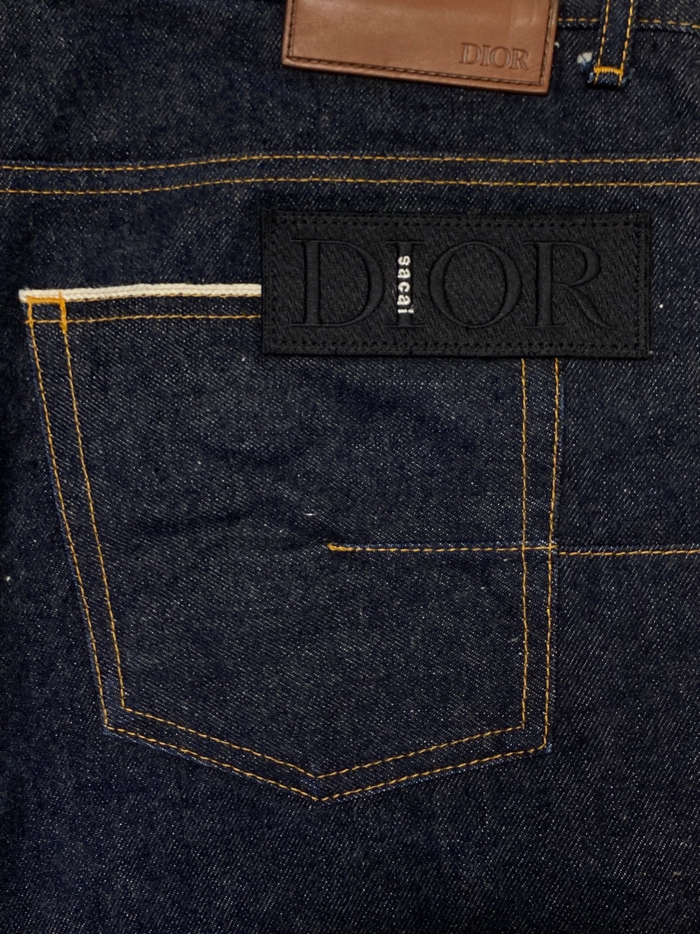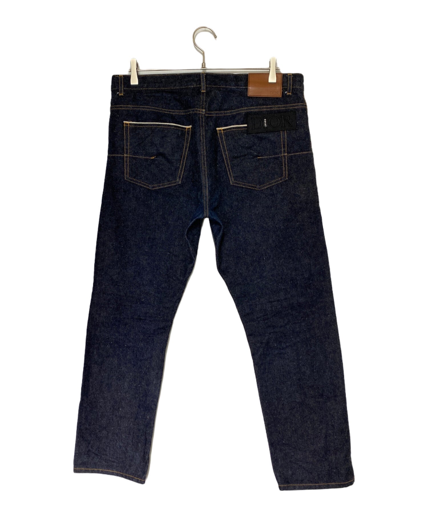 Comment This is a collaboration item between DIOR and sacai. These denim pants have patches with both brands' logos near the back pockets and buttoned slits at the hems.