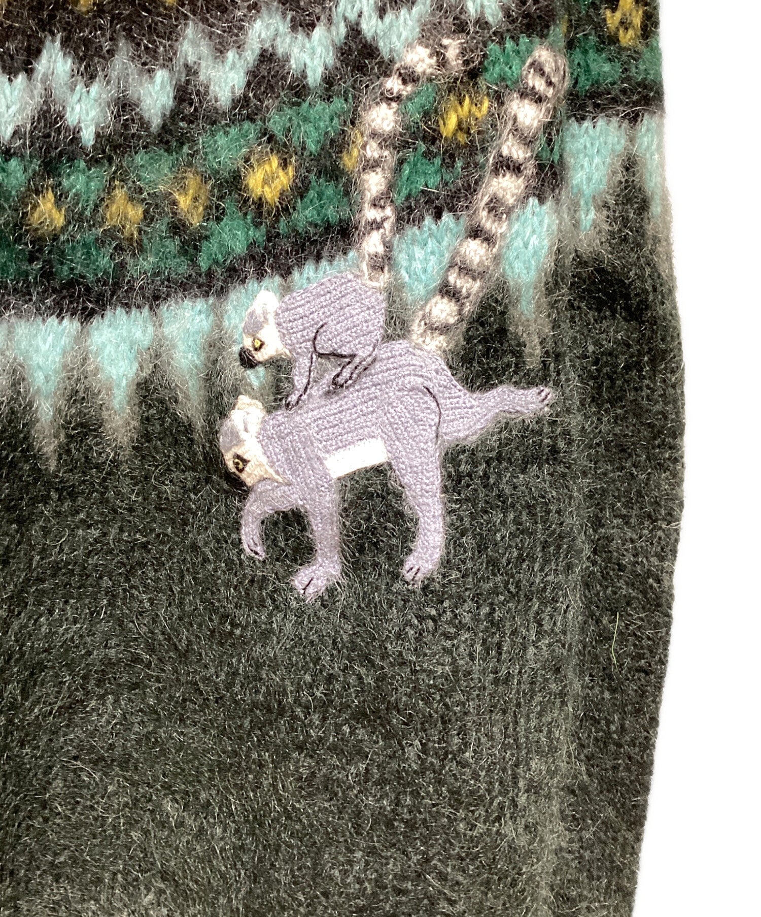 | Comment | This is a collaboration design knit between Japanese ceramic artist "Snafujita" and "LOEWE". The embroidered lemur design on the Nordic pattern is a playful piece. Blended with mohair, it has a luxurious texture with a long pile and excellent warmth retention properties. |