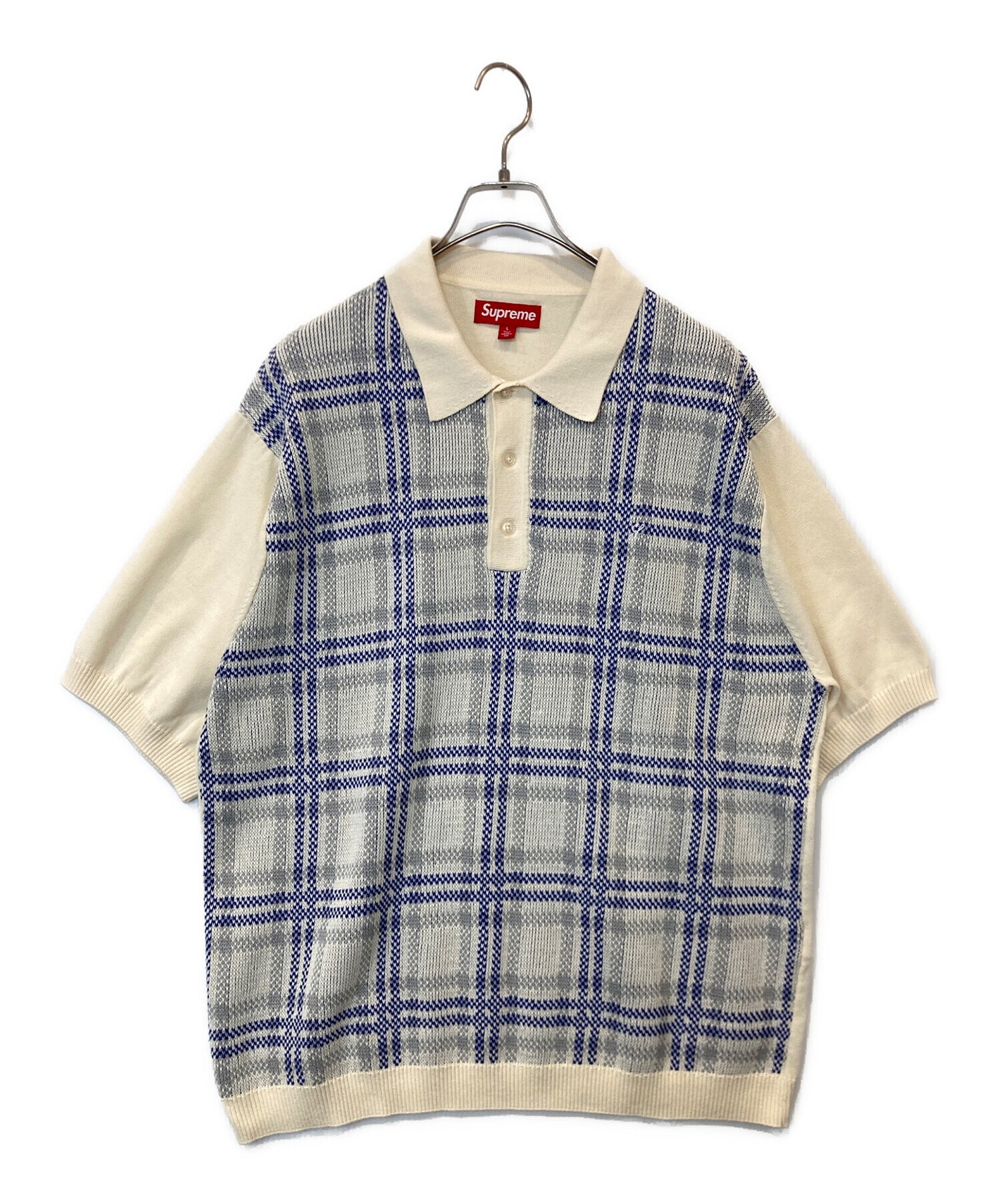 [Pre-owned] SUPREME 24SS Plaid Knit S/S Polo White Knit Polo Shirt (Plaid Knit/Polo White)