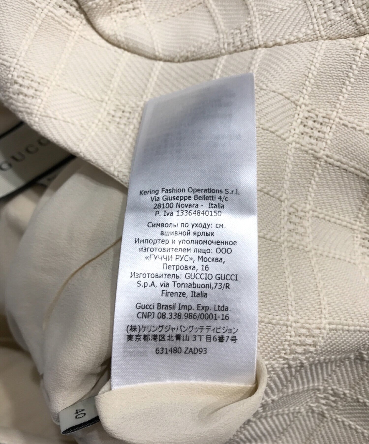 | Material | Outer fabric 61% cotton, 39% wool Lining 73% acetate, 27% silk |