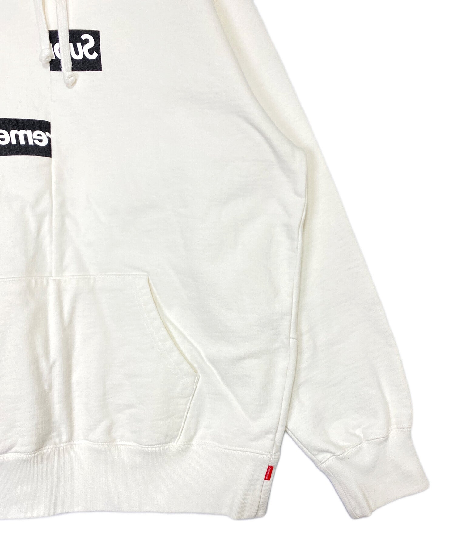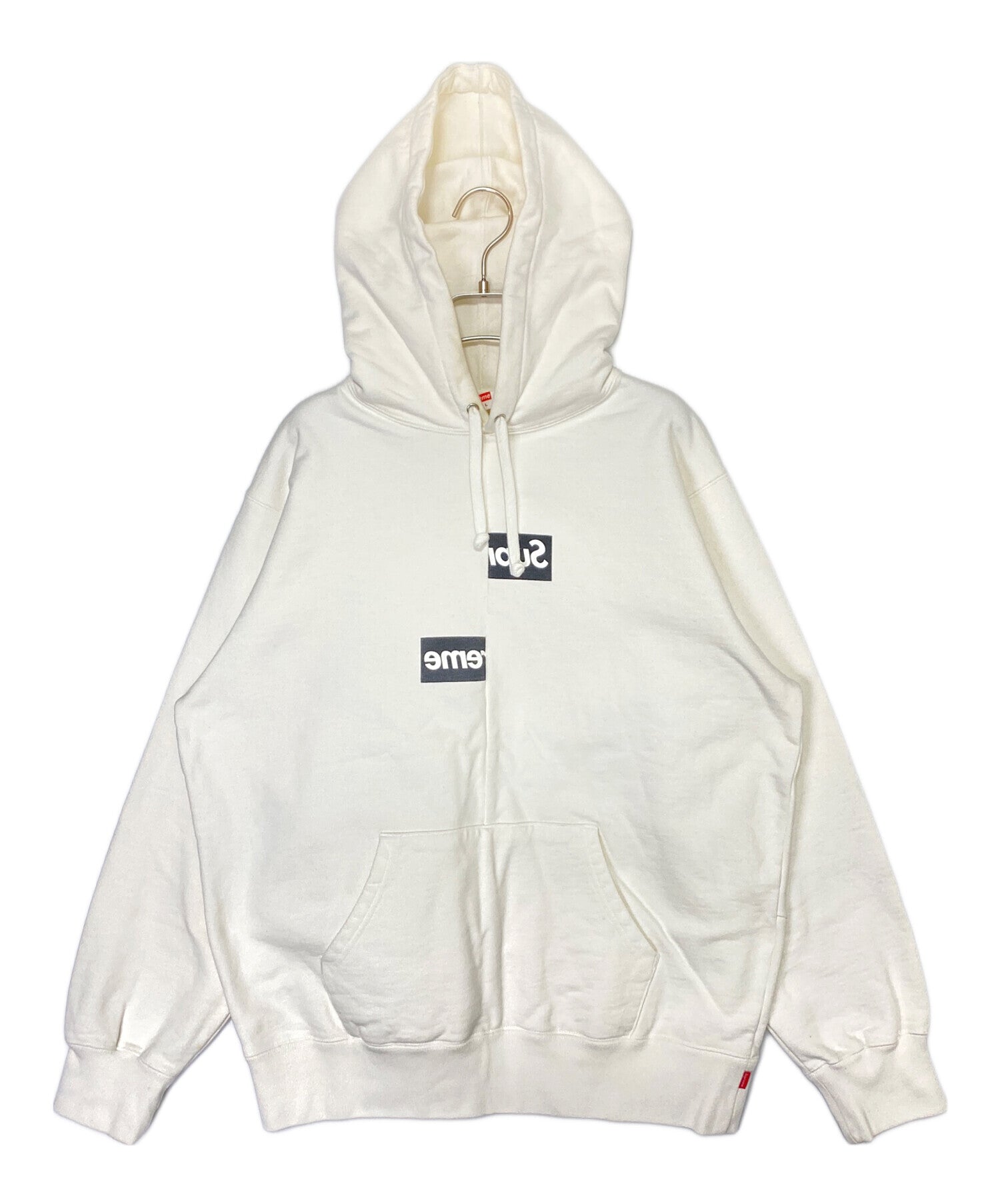 | Comment | This item is a collaboration between Supreme and COMME des GARCONS SHIRT. This hoodie features a vertically displaced box logo designed on the front. The back also has a text print. |