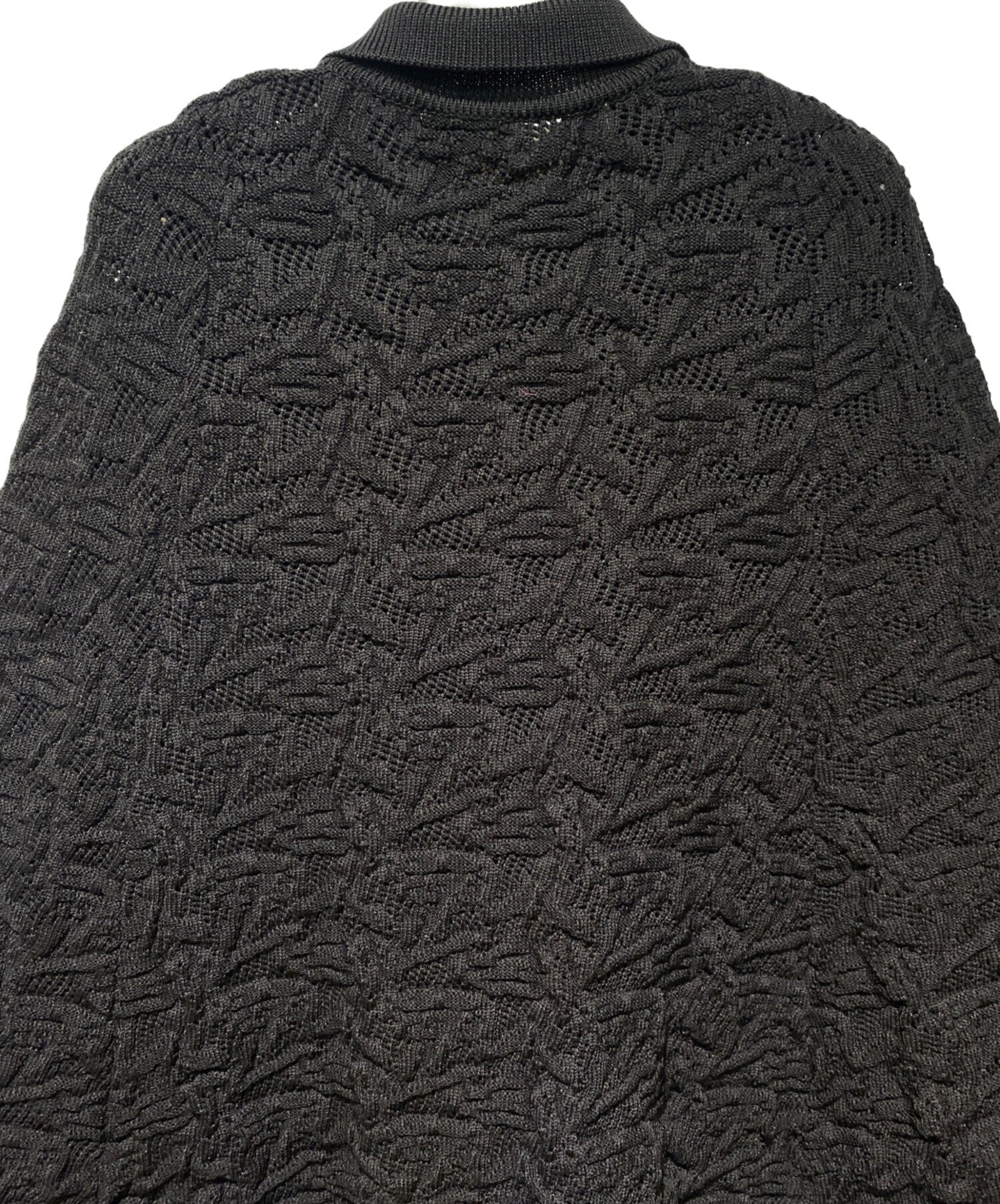 | Comment | This acrylic cardigan features a deformed design typical of Comme des Garcons. This item is made of lace fabric with a three-dimensional feel, and is elegantly finished in black. It can be worn like a cape without sleeves, allowing you to enjoy layering. |