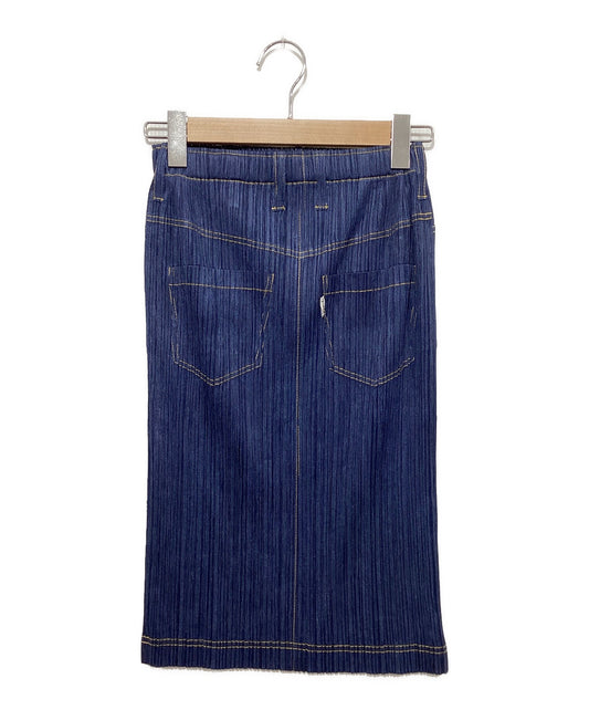 [Pre-owned] PLEATS PLEASE Denim Transfer Pleated Skirt PP75-JG021